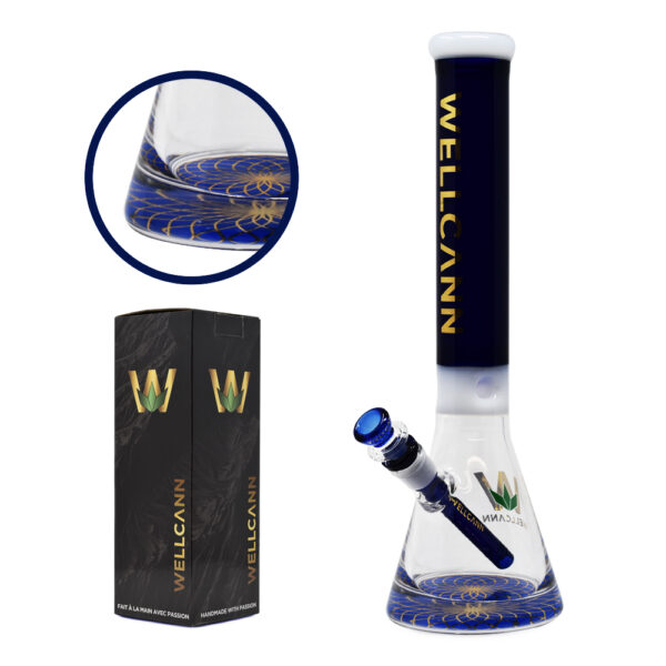Traditional Glass Bong Height: 17″ Colour: Black with Blue Base